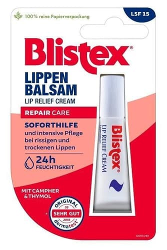 Blistex Lippenbalsam Repair Care bietet intensive Pflege für spröde und raue Lippen. Die Formel mit wertvollem Campher und Thymol stärkt die Lipidbarriere und glättet die Hautoberfläche. Mit Lichtschutzfaktor 15 schützt der Balsam zusätzlich vor UV-Strahlen.