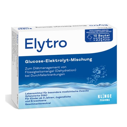 Elytro ist eine Glucose-Elektrolyt-Mischung in Pulverform, die gezielt entwickelt wurde, um auf den Flüssigkeitsverlust bei Durchfall (Diarrhö) zu reagieren und die verlorenen Flüssigkeiten und Elektrolyte schnellstmöglich auszugleichen.
