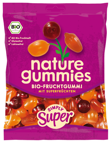 Die Nature Gummies BIO Simply Super verbinden die Kraft ausgewählter Superfrüchte mit fruchtigem Geschmack zu einem besonderen Nascherlebnis. Jeder Bissen begeistert mit intensiven Fruchtkombinationen, die auf natürliche Weise süß und aromatisch sind. Diese Bio‑Fruchtgummis laden dazu ein, außergewöhnliche Geschmacksmomente zu entdecken – ohne künstliche Zusätze.