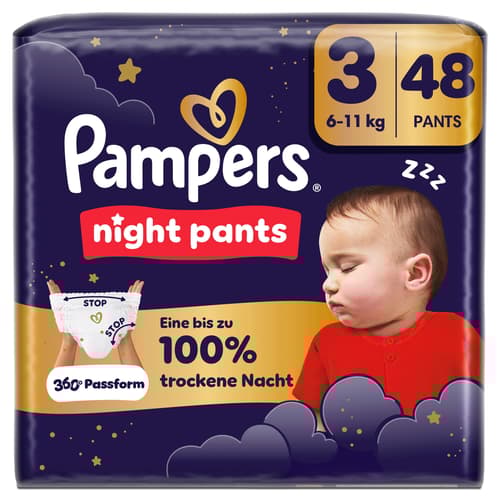 Polen,Pampers Night Pants Gr. 3 Sparpack 48 ST bieten Ihrem Baby zuverlässigen Schutz während der Nacht. Der super saugfähige Kern sorgt für bis zu 100% auslaufsichere Nächte.