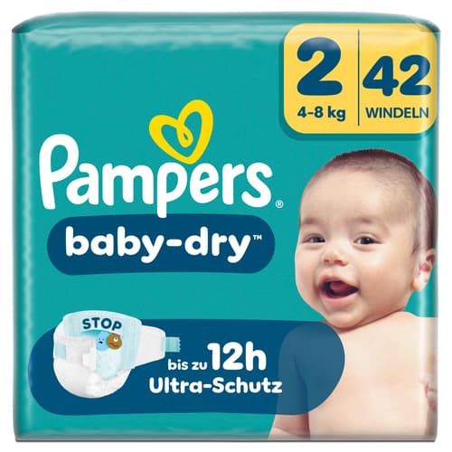 42 StkPampers Baby-Dry Windeln Gr. 2 Mini (4-8kg) bieten zuverlässigen Schutz und Komfort für Babys. Der schnell absorbierende Kern nimmt Flüssigkeit kontinuierlich auf und sorgt für bis zu 100% Auslaufschutz. Die weichen Materialien und der Urin-Indikator machen die Windeln besonders praktisch.
