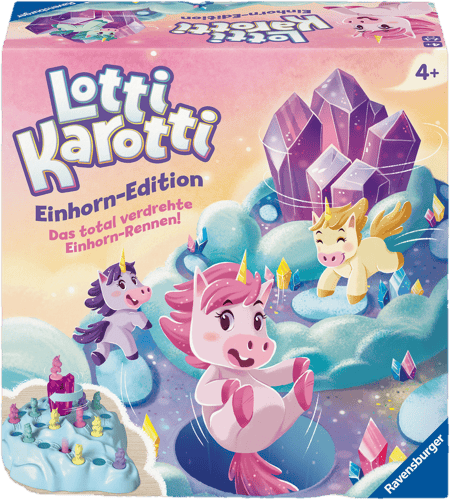 Das Ravensburger Kinderspiel Lotti Karotti Einhorn Edition ist ein spannendes Brettspiel für Kinder. Spieler navigieren ihre Einhörner durch eine magische Landschaft und versuchen, das Ziel zu erreichen, bevor andere Spieler es schaffen.