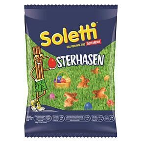 Hol dir den knusprigen Osterspaß direkt in dein Jausen-Sackerl. Die Soletti Osterhasen bringen die bewährte Laugenqualität in einer herzigen, österlichen Form auf den Tisch – ideal für das Osternest oder als salziger Kontrast zu den süßen Schokoeiern.