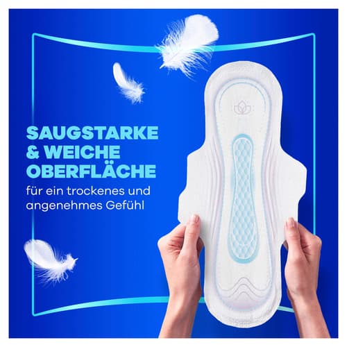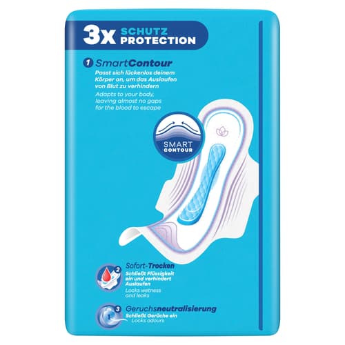 Die Smart Contour-Technologie passt sich dem Körper an und hilft, Flüssigkeit nahe an der Quelle aufzunehmen. Die weiche Oberfläche absorbiert in Sekunden und unterstützt ein trockenes Gefühl. OdourLock neutralisiert Gerüche für Frische über den Tag. Always bietet Periodenschutz sowie Lösungen bei Blasenschwäche.