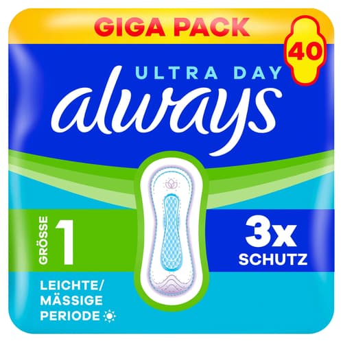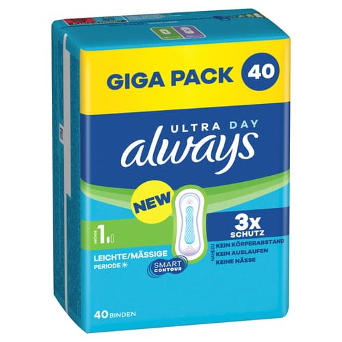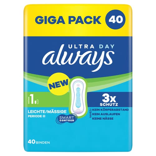 Deutschland,Always Ultra Damenbinden Größe 1 (Normal) sind für mäßige Tage der Periode gedacht. Das Gigapack enthält 40 Binden.