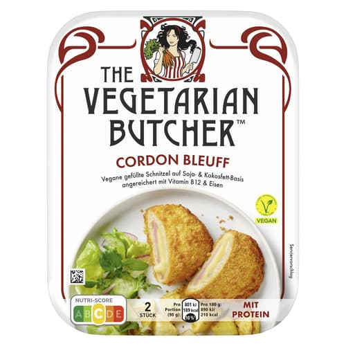 Zutaten: 34% texturierte Soja-Basis (Trinkwasser, 6,6% SOJAEIWEISS, Stärke, WEIZENGLUTEN), Trinkwasser, Mehl (WEIZEN, Mais), pflanzliche Öle (Raps, Sonnenblumen, in veränderlichen Gewichtsanteilen), 2,5% SOJAEIWEISS, 1,7% Kokosfett, modifizierte Stärke, Zitrusfaser, Verdickungsmittel (Methylcellulose), Stärke (mit WEIZEN), Aromen (mit SELLERIE), Speisesalz, WEIZENGLUTEN, Hefeextrakt, Dextrose, Säuerungsmittel (Milchsäure, Apfelsäure, Citronensäure), Branntweinessig / Weingeistessig, Backtriebmittel (Diphosphate, Natriumcarbonate), Zucker, Säureregulator (Kaliumacetat), Maltodextrin, HAFERFASER, Hefe, Gewürze, Geliermittel (verarbeitete Euchema-Algen, Konjakgummi), Farbstoff (Carotin), Olivenölextrakt, Kräuter, Glukosesirup, Süßkartoffelextrakt, Kaliumchlorid, Raucharoma, Eisendiphosphat, Vitamin B12.