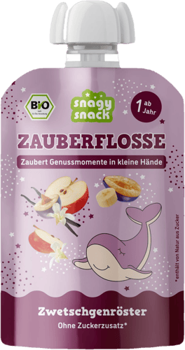 Der Snagy BIO Zauberflosse Zwetschgenröster ist ein köstliches Bio-Fruchtpüree, ideal für kleine Hände. Dieser österreichische Klassiker vereint fruchtige Bio-Zwetschgen, feine Bio-Äpfel, Banane, echte Vanille und eine Prise Ceylon-Zimt zu einem wohltuenden, abgerundeten Geschmack. Er ist 100% kindgerecht und kommt im praktischen 100g-Pack, perfekt für einen schuldfreien Snack, der Freude bereitet.