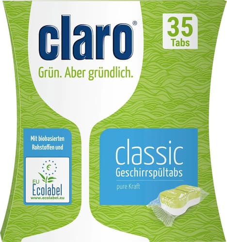 claro Classic Tabs sind Geschirrspültabs in wasserlöslicher Folie für die Spülmaschine. Sie sind für eine schichtweise Auflösung entwickelt.