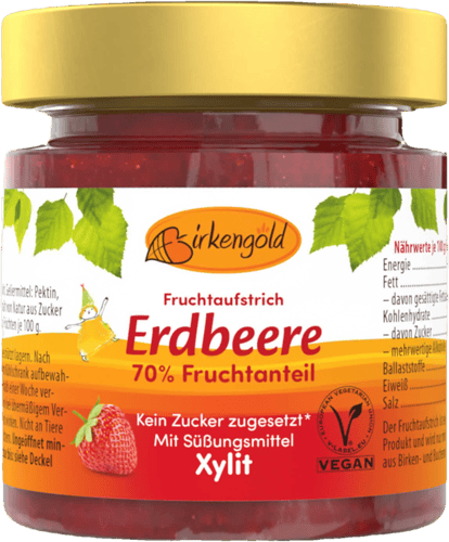 Hol dir den Geschmack des Sommers direkt auf dein Frühstücksbrot. Der Birkengold Fruchtaufstrich Erdbeere besticht durch einen besonders hohen Fruchtanteil von 66 % und kommt dabei völlig ohne zugesetzten Haushaltszucker aus. Die feine Süße stammt ausschließlich aus Birkenzucker (Xylit), wodurch der Aufstrich deutlich weniger Kalorien enthält als herkömmliche Konfitüren, aber das volle Aroma sonnengereifter Erdbeeren bewahrt.