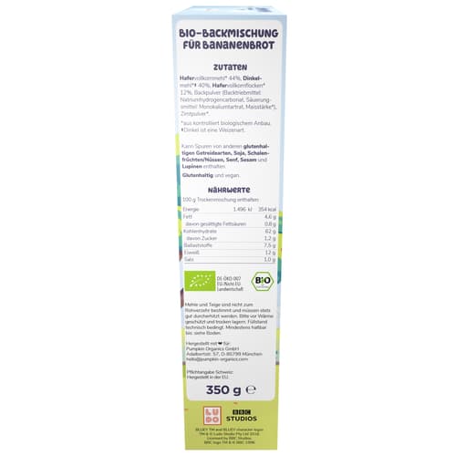 Pumpkin Organics Bluey BIO Hafer & Dinkel Bananenbrot Backmischung ab 3+ Jahren