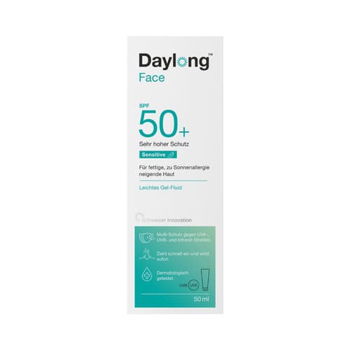 Daylong™ Sensitive Gel-Fluid SPF 50+ ist sehr gut geeignet für den täglichen Sonnenschutz für das Gesicht und als Make-up Grundlage. Das photostabile UV-Filtersystem von Daylong™ bietet hochwirksamen und sofortigen UVA-, UVB-, IR- und HEV-Schutz, effektiven Zellschutz und beugt sonnenbedingter Hautalterung vor.