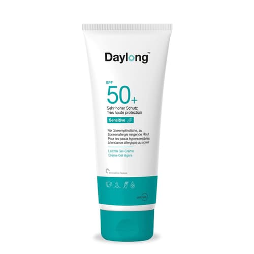 Die Daylong Sensitive Gel-Creme SPF 50+ bietet starken Schutz und hohen Komfort für die überempfindliche Haut. Die extra leichte und fettfreie Gel-Creme ist durch den Verzicht auf Fette und herkömmliche Emulgatoren sehr gut verträglich – und das auch für empfindliche und anspruchsvolle Haut. Sie leistet sofortigen und umfassenden Sonnenschutz dank der verwendeten photostabilen Breitbandfilter. Diese schützen die Haut vor UVA-, UVB-, IR- und HEV-Strahlen, und beugen zudem effektiv Hautalterung vor. Die extra leichte Gel-Creme zieht sehr schnell ein und mit ihrem starken Sonnenschutz bietet sie ideale Voraussetzungen für Sport, Baden, Lesen oder einfach nur im Alltag.