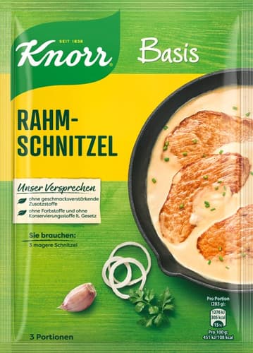 Was Sie dazu brauchen: 3 Schnitzel von Schwein, Kalb, Pute oder Rind (500 g), 2 EL Öl 1) Ungewürzte Schnitzel in 2 EL heißem Öl auf beiden Seiten kurz anbraten. 2) Fleisch aus der Pfanne nehmen, mit 3/8 Liter Wasser aufgießen. Beutelinhalt einrühren und aufkochen lassen. 3) Fleisch dazugeben und auf kleiner Kochstufe zugedeckt weichdünsten (ca. 30 Minuten). Bei Bedarf etwas Wasser nachgießen.