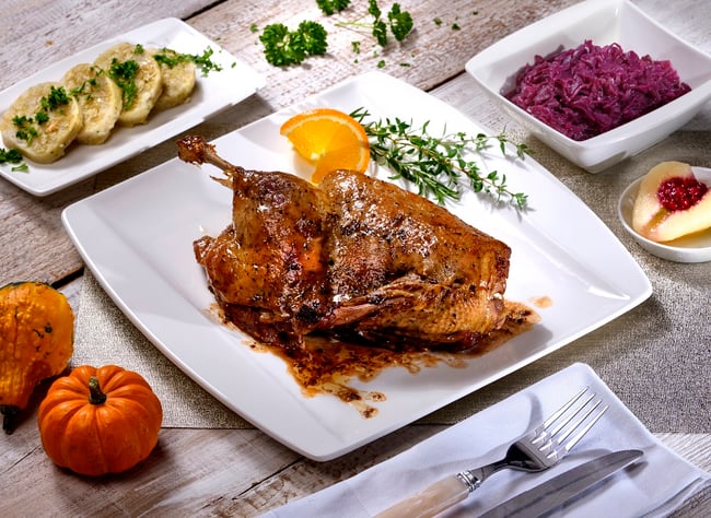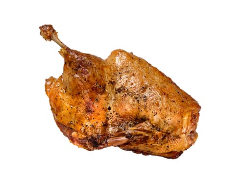 Profi Tipp: Für besonders knusprige Haut am Ende die Halbe Ente mit etwas Öl bepinseln und bei maximaler Oberhitze kurz gratinieren.