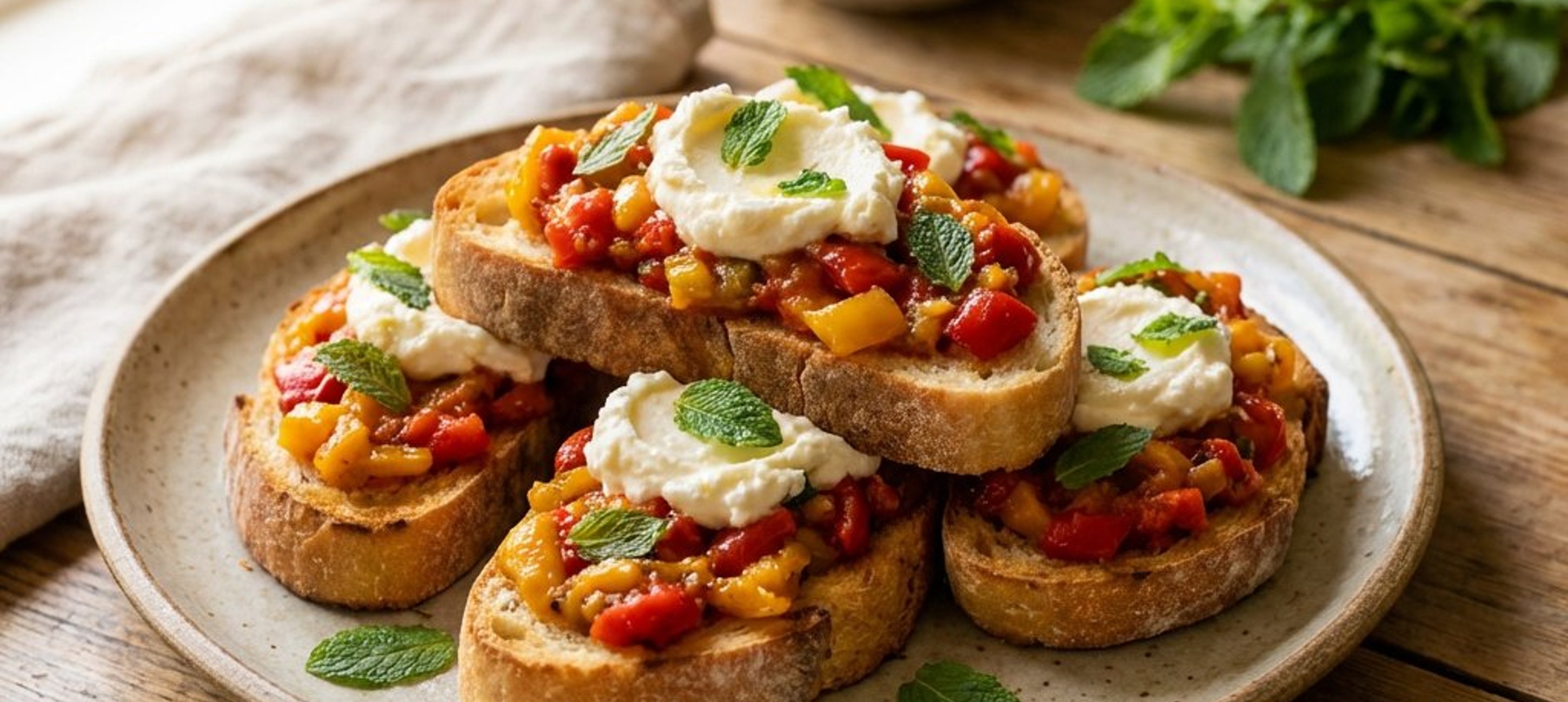 Für ein besonders intensives Aroma können Sie die Paprika auch auf dem Grill rösten. Die Ciabatta schmeckt am besten, wenn sie noch warm serviert wird.
