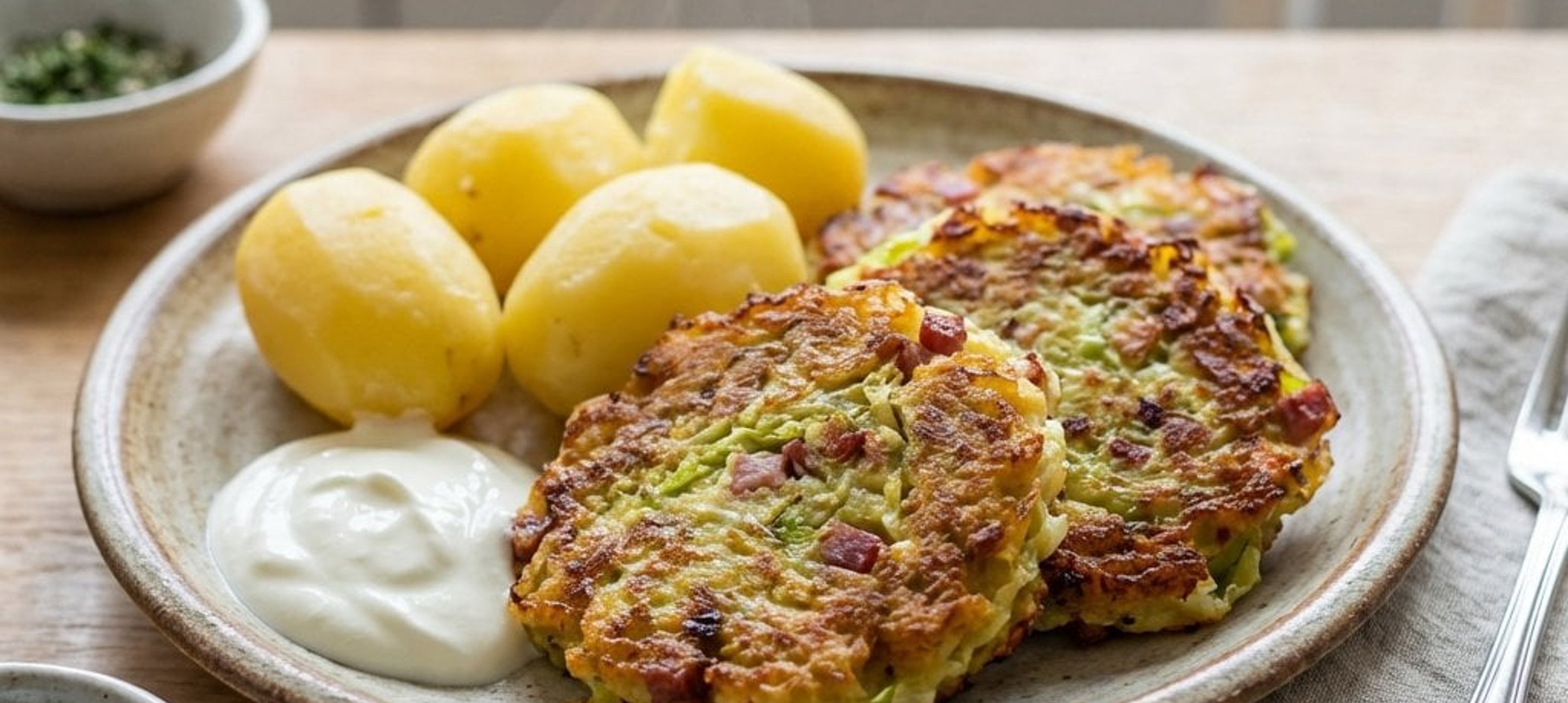 Ein kleiner Tipp: Wenn Sie die Laibchen besonders knusprig mögen, können Sie sie zweimal panieren. Servieren Sie dazu einen Klecks Sauerrahm mit frischem Schnittlauch. Mahlzeit!