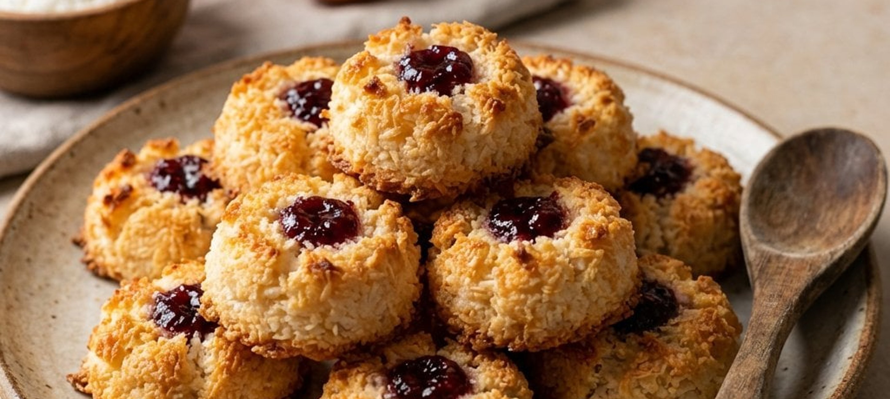 Verwenden Sie eine säuerliche Marmelade wie Ribisel oder Brombeere, um einen schönen Kontrast zur Süße des Kokos zu schaffen.