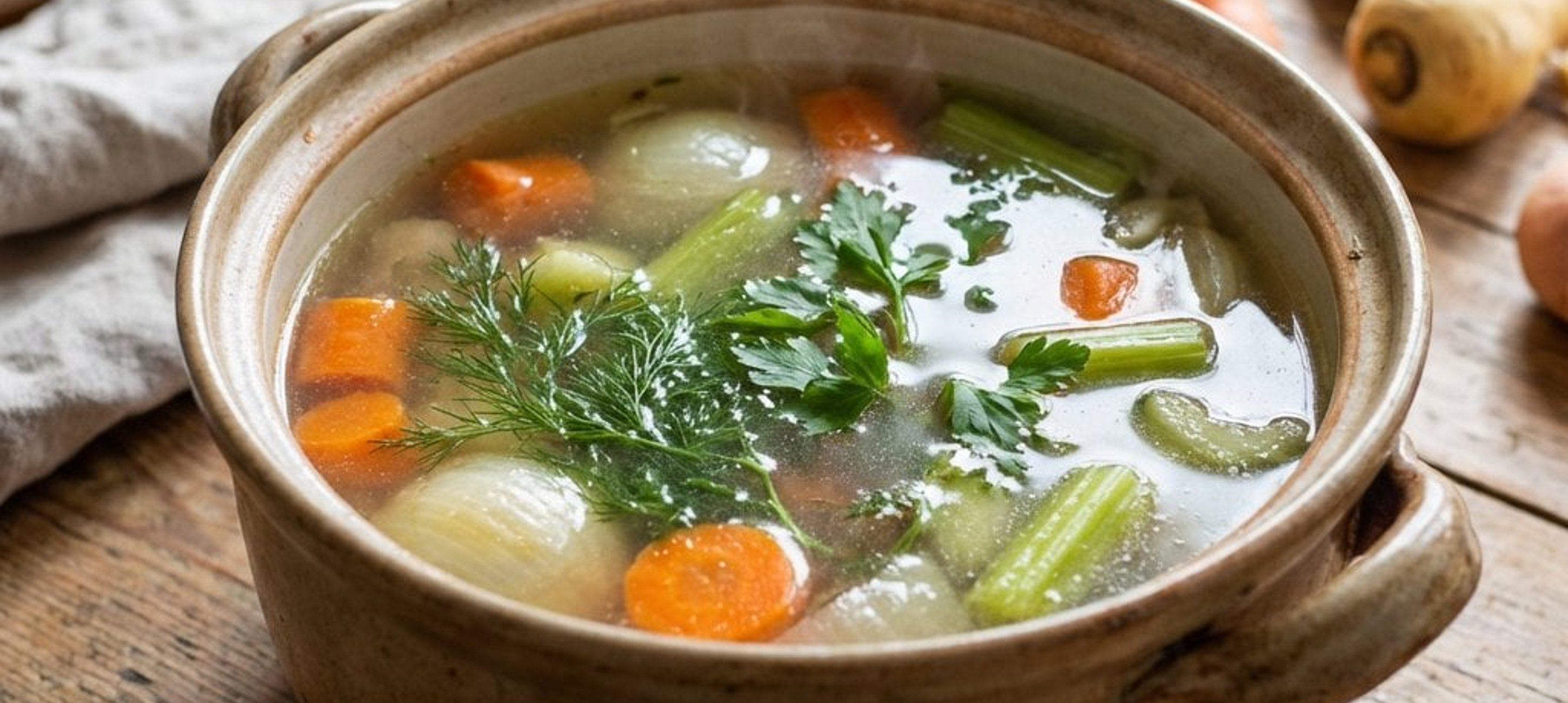 Tipp: Für einen besonders klaren Fond das Gemüse nur sanft dünsten und nicht bräunen lassen. Den Fond niemals sprudelnd kochen, sondern nur leise simmern lassen.