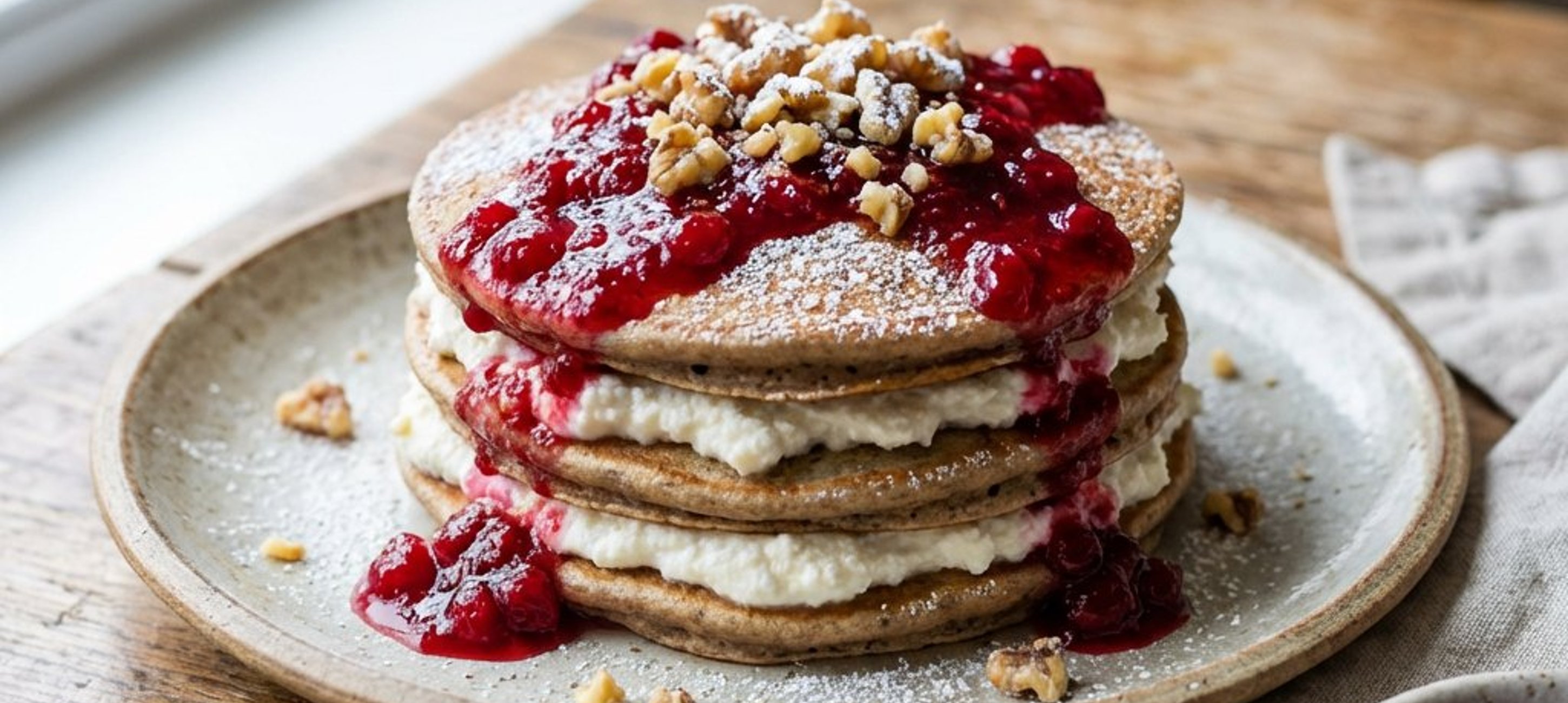 - 3Die fertigen Palatschinken großzügig mit der Ricotta-Füllung bestreichen, zusammenklappen oder einrollen. Mit Preiselbeermarmelade und gehackten Walnüssen garnieren und vor dem Servieren mit Staubzucker bestreuen. Genießen Sie dazu am besten eine Tasse hochwertigen Kaffee.