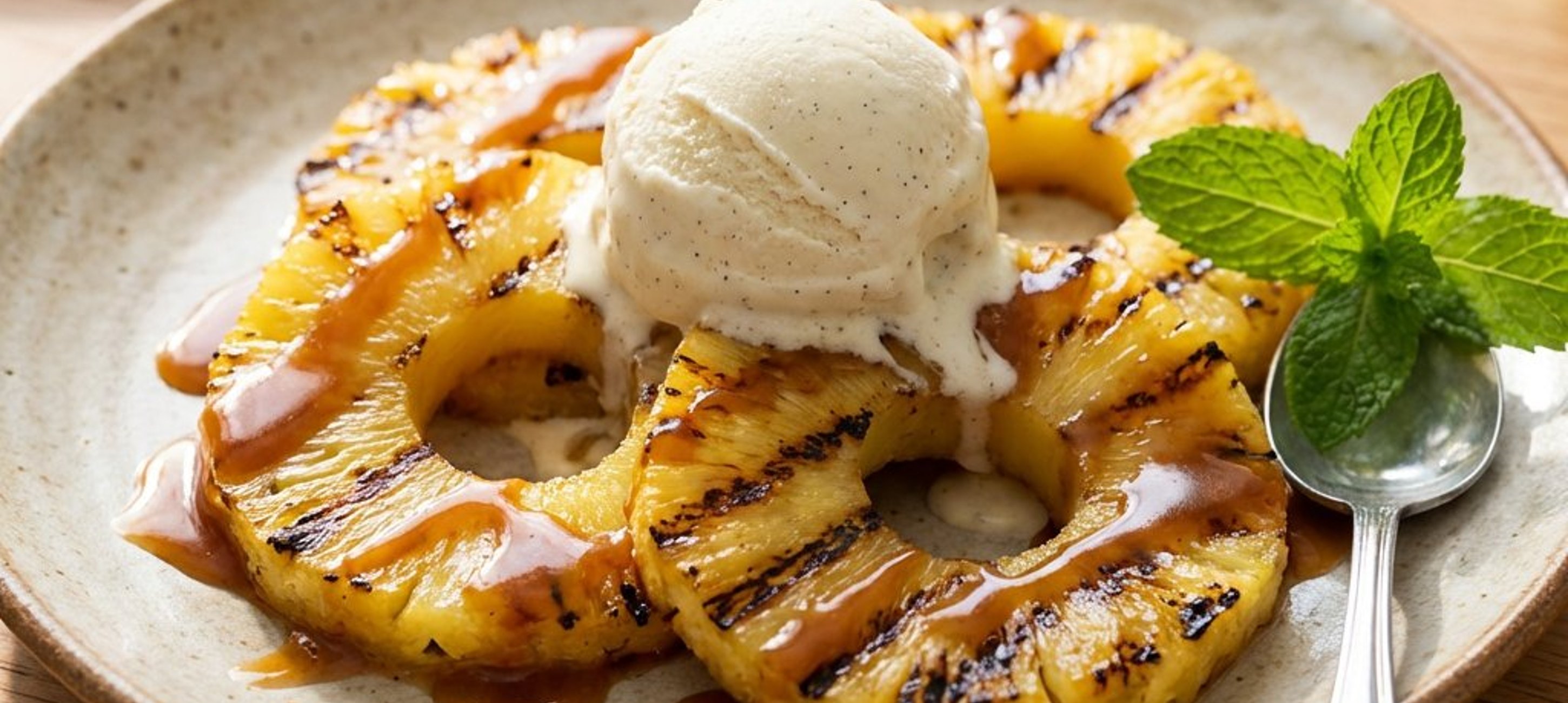 Servieren Sie die flambierte Ananas sofort, solange sie noch warm ist, zusammen mit einer Kugel Vanilleeis. Der Kontrast zwischen heißer Frucht und kaltem Eis ist ein wahrer Genuss!