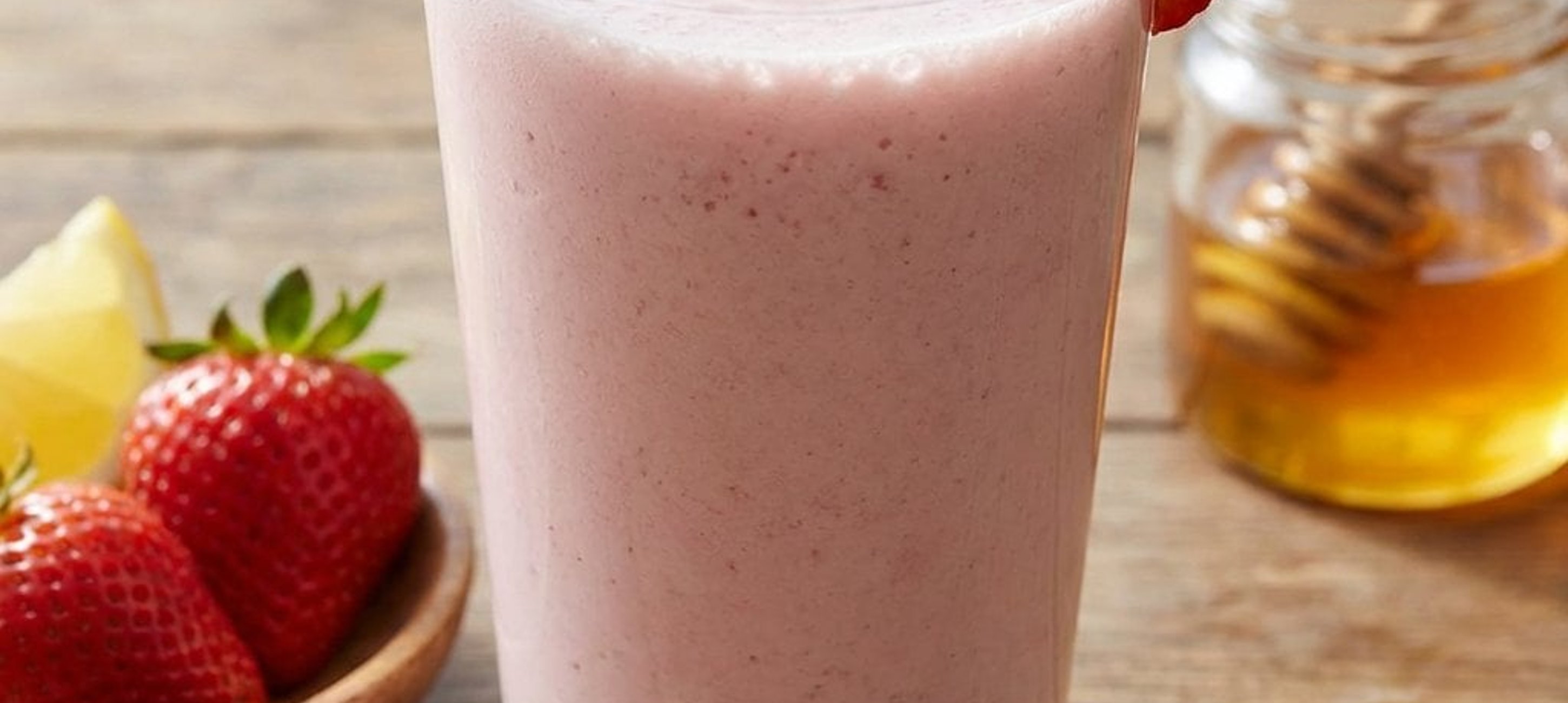 - 2Erdbeeren, Naturjoghurt, Honig und einen Spritzer Zitronensaft in einen Standmixer geben.