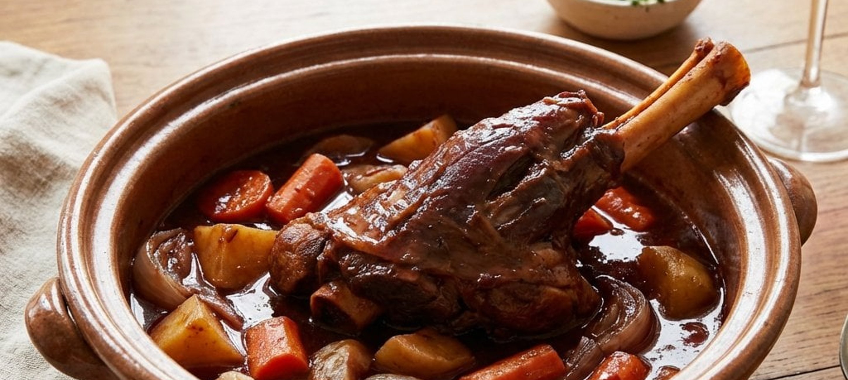 Servieren Sie die Lammstelzen klassisch mit Erdäpfelpüree oder einem cremigen Selleriepüree.