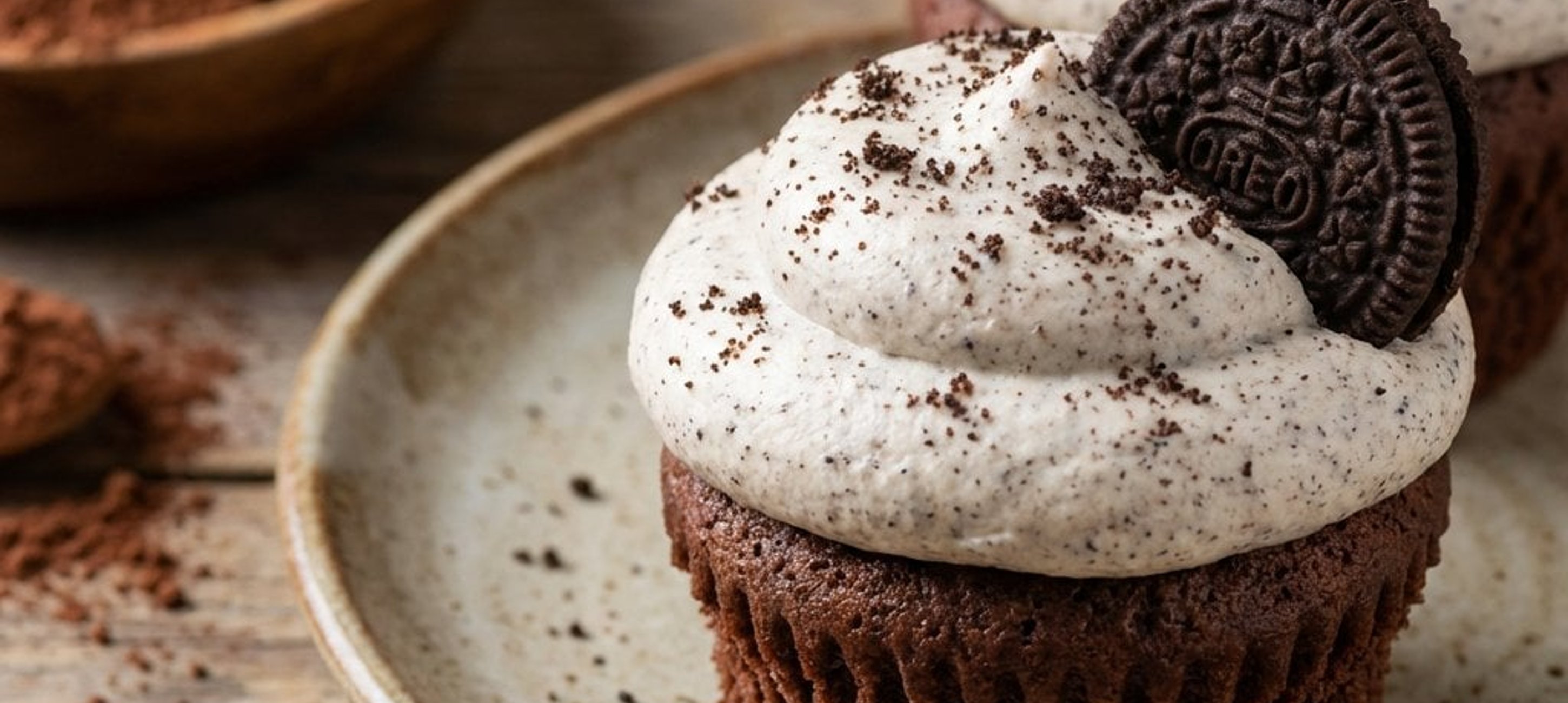 Ein kleiner Tipp: Wenn du die Oreo-Kekse für die Creme besonders fein mahlst, lässt sich die Creme noch leichter mit einer Sterntülle aufspritzen. Viel Spaß beim Backen!