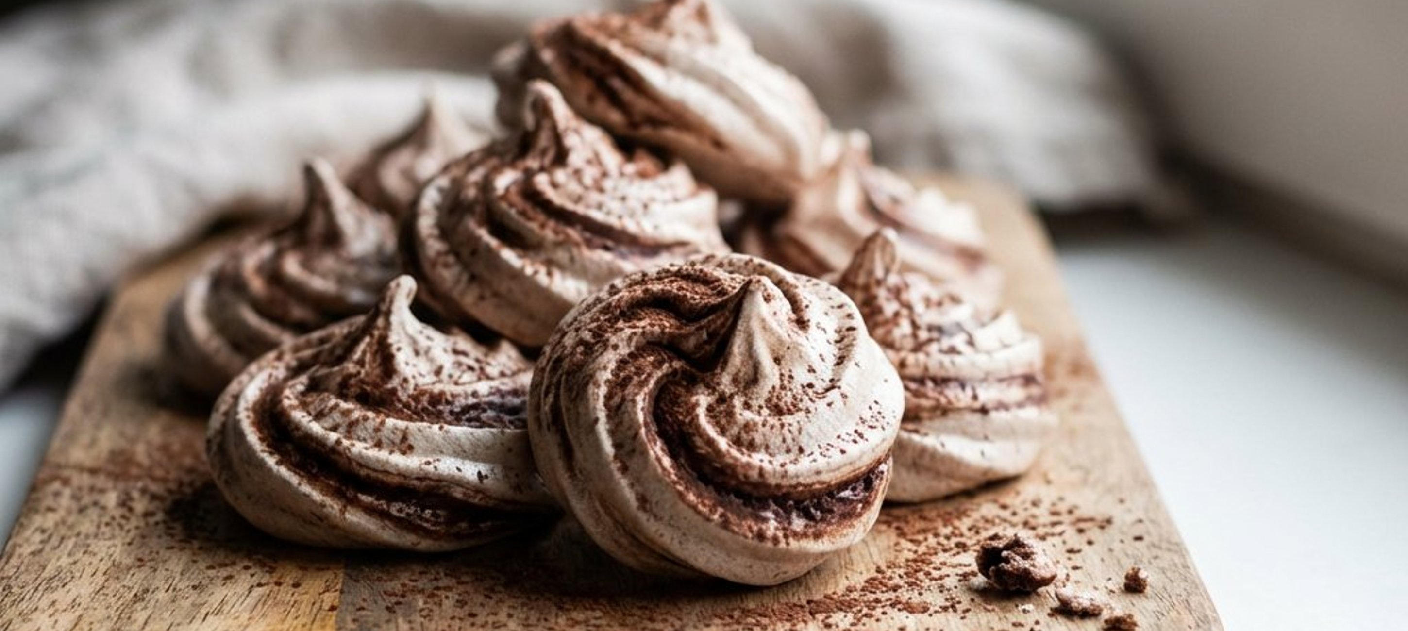 - 3Einen Spritzbeutel mit einer Sterntülle vorbereiten. Den Eischnee in den Beutel füllen und die geschmolzene Schokolade vorsichtig an einer Innenseite des Beutels hinunterlaufen lassen, um den Marmoreffekt zu erzielen. Große Baisers mit etwas Abstand auf ein mit Backpapier ausgelegtes Backblech spritzen.