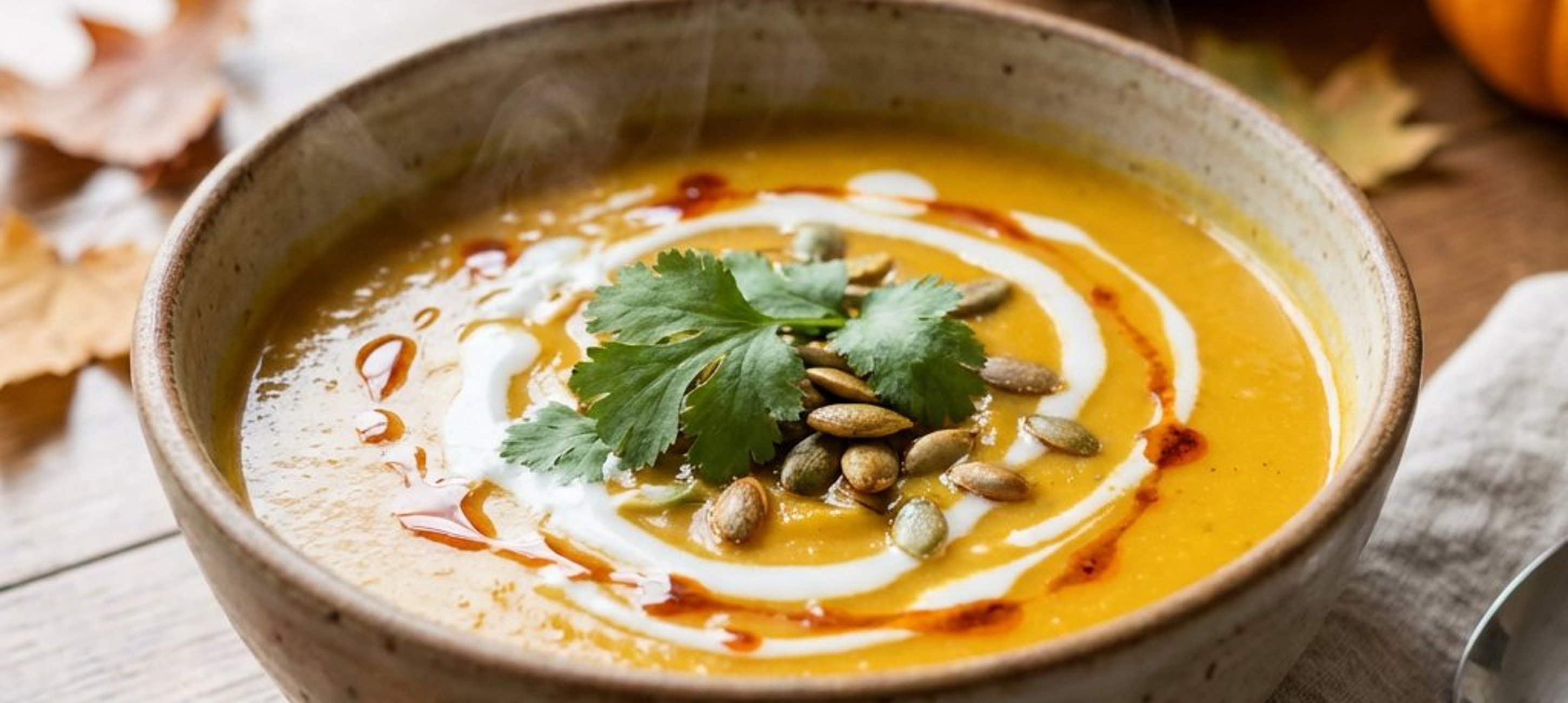 Für eine extra feine Note können Sie die Suppe vor dem Servieren mit ein paar Tropfen Kürbiskernöl oder gerösteten Kürbiskernen garnieren.