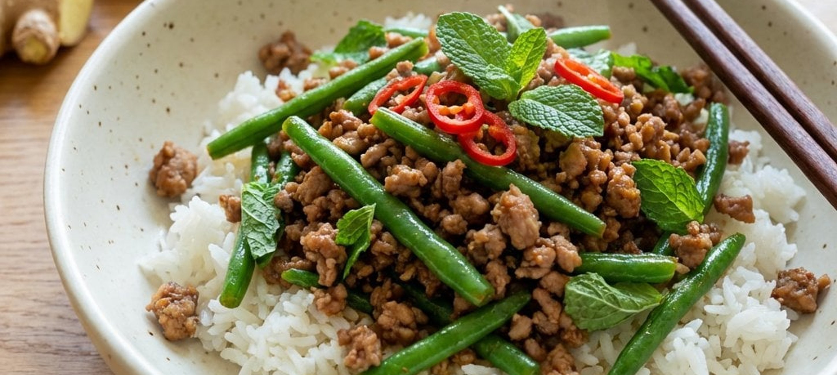 - 4Den Jasminreis nach Packungsanleitung kochen und zusammen mit dem Fleisch-Fisolen-Mix servieren.