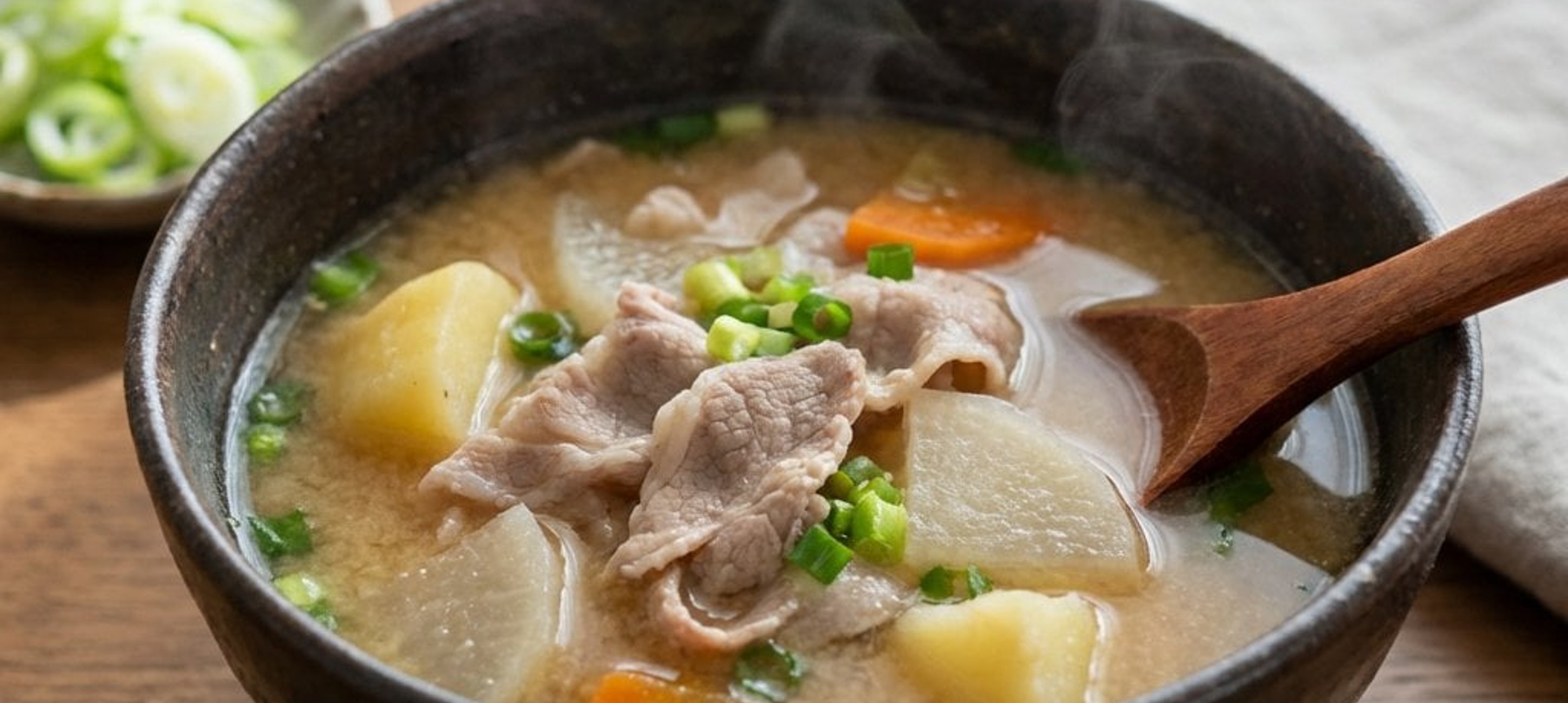 Ein kleiner Tipp für das perfekte Aroma: Verwenden Sie für diese Suppe am besten eine helle Miso-Paste (Shiro Miso), da diese milder und leicht süßlich ist und hervorragend mit dem Schweinefleisch und dem Wurzelgemüse harmoniert. Wenn Sie die Suppe noch g