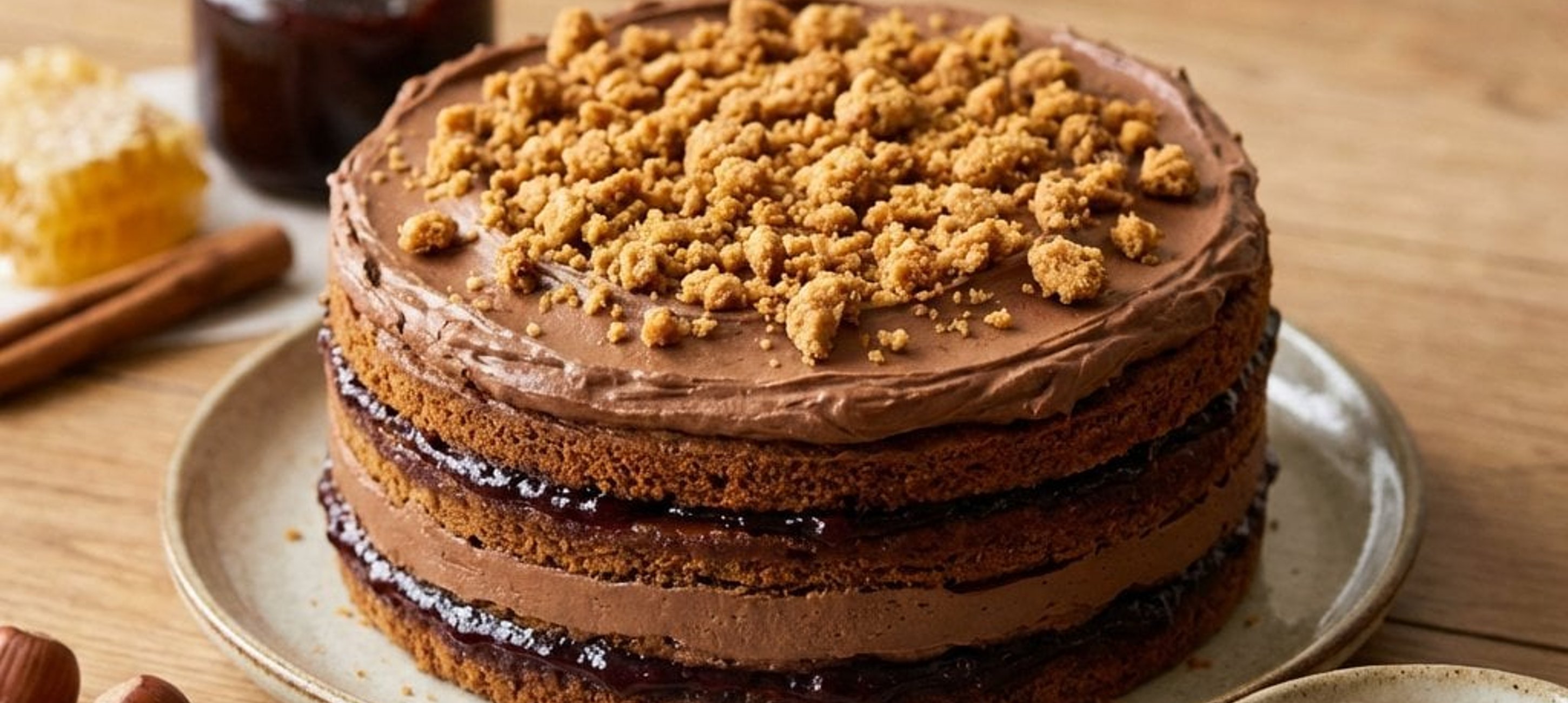 - 1Die Böden abwechselnd mit Schokocreme und Powidl bestreichen. Auf die Powidl-Schicht jeweils gehackte Nüsse streuen. Schichten Sie so, dass auf dem vorletzten Boden eine Powidl-Schicht ist.