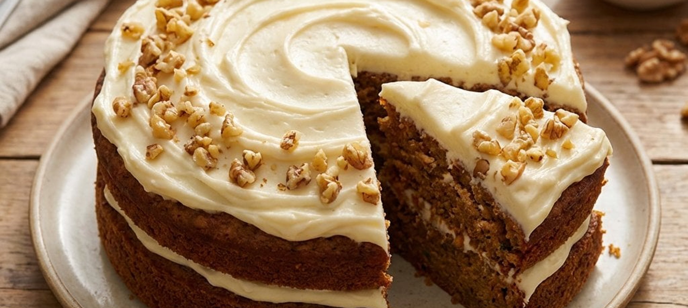 - 1Das Frosting gleichmäßig auf der ausgekühlten Torte verteilen und nach Belieben mit weiteren Walnüssen verzieren.