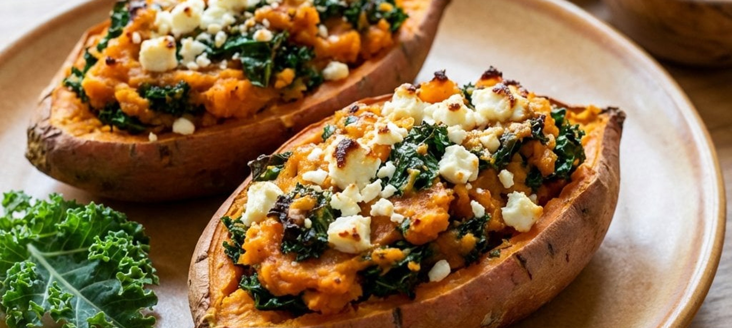 - 4Die Mischung zurück in die Süßkartoffelschalen füllen und die gefüllten Kartoffeln für weitere 10 Minuten im Ofen überbacken. Heiß servieren.