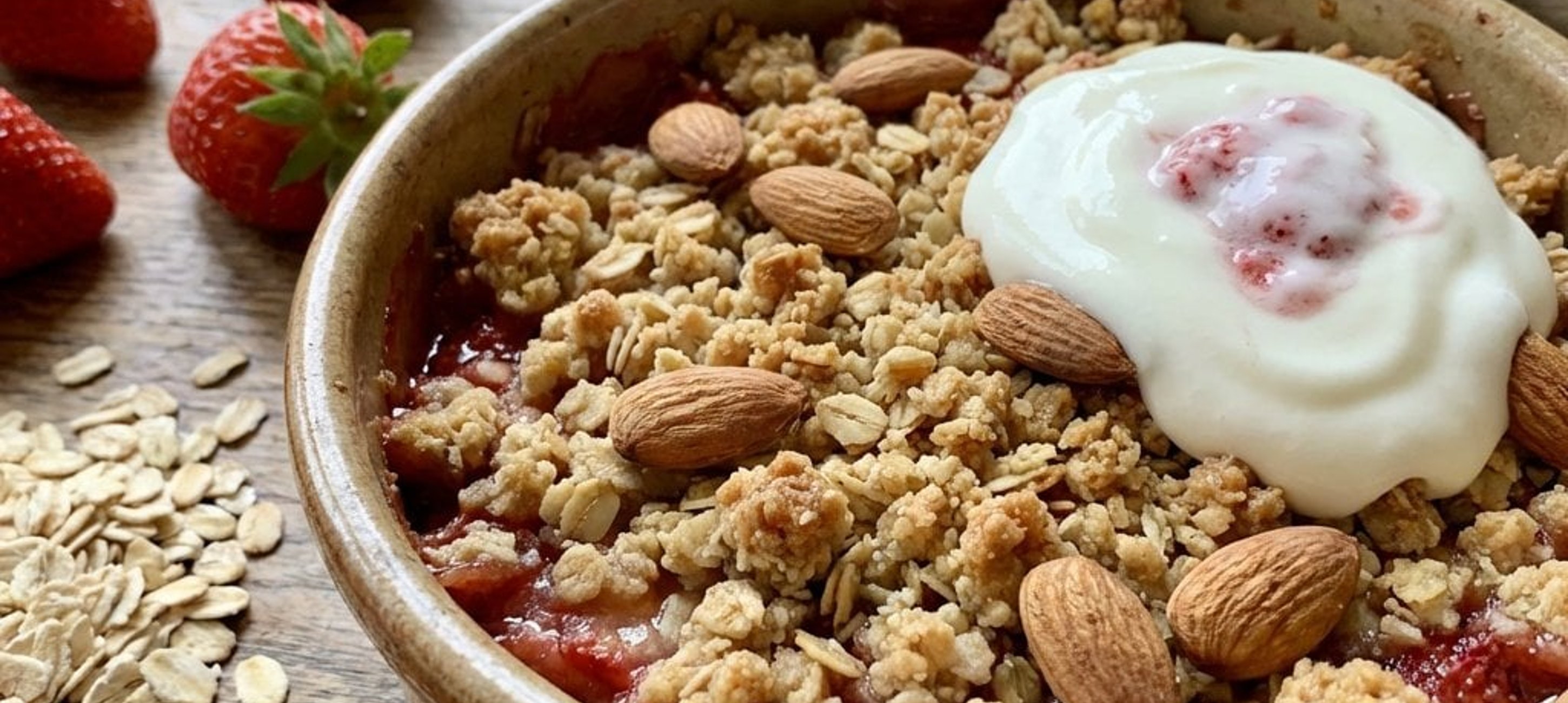 - 3Backen Sie den Crumble im vorgeheizten Rohr für ca. 30 Minuten, bis die Streusel goldbraun und knusprig sind.