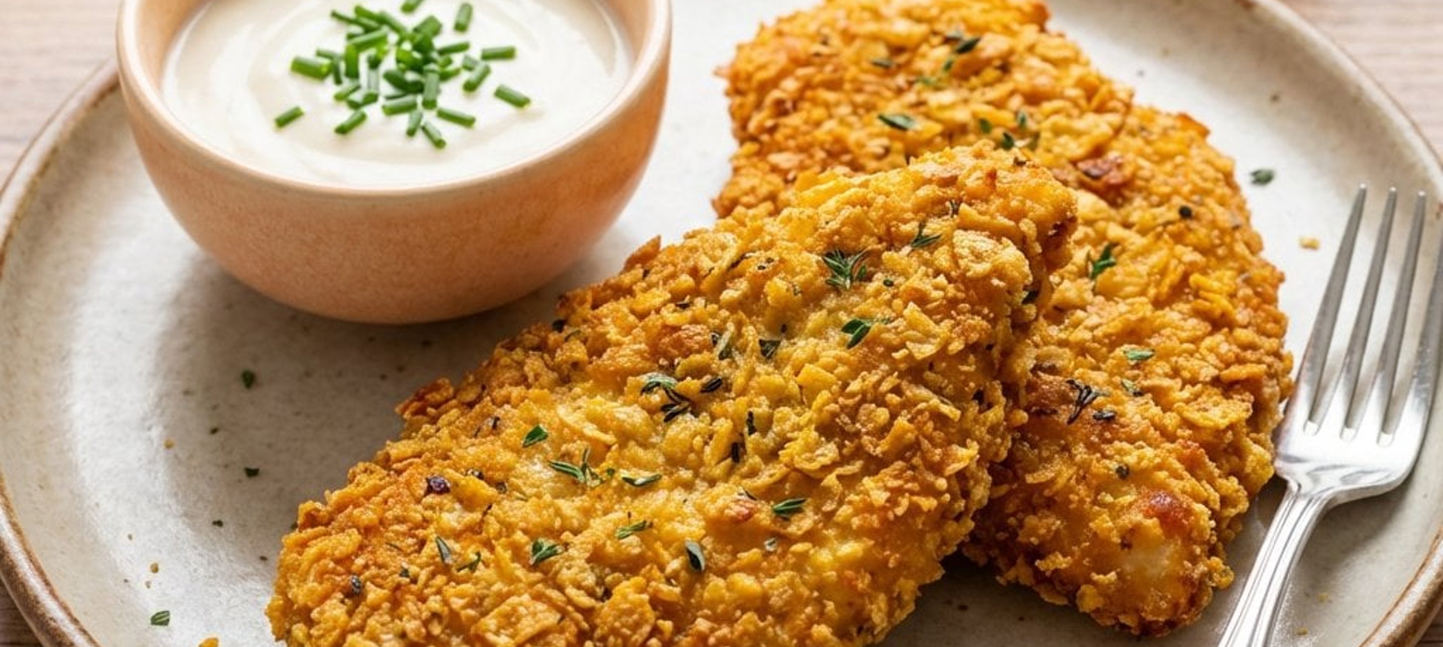 Für eine besonders knusprige Panier können Sie ein paar glutenfreie Cornflakes zerbröseln und unter die Mais-Semmelbrösel mischen.