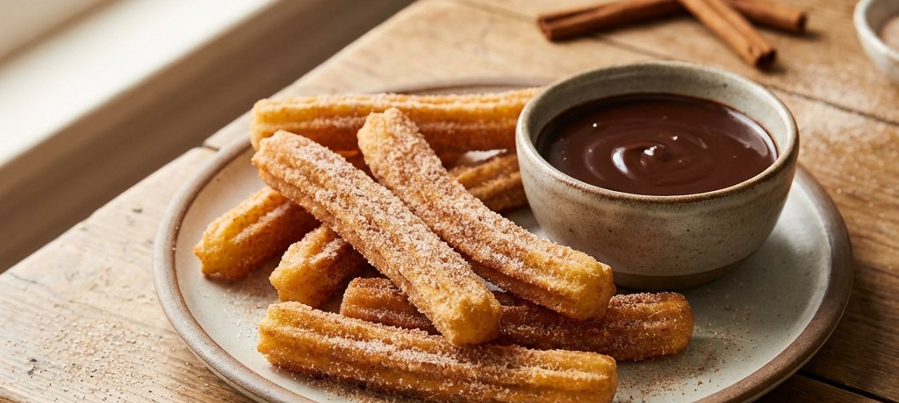 Servieren Sie die Churros am besten noch warm, wenn sie am knusprigsten sind. Für eine fruchtige Note können Sie auch etwas Orangenabrieb in den Zimtzucker mischen!