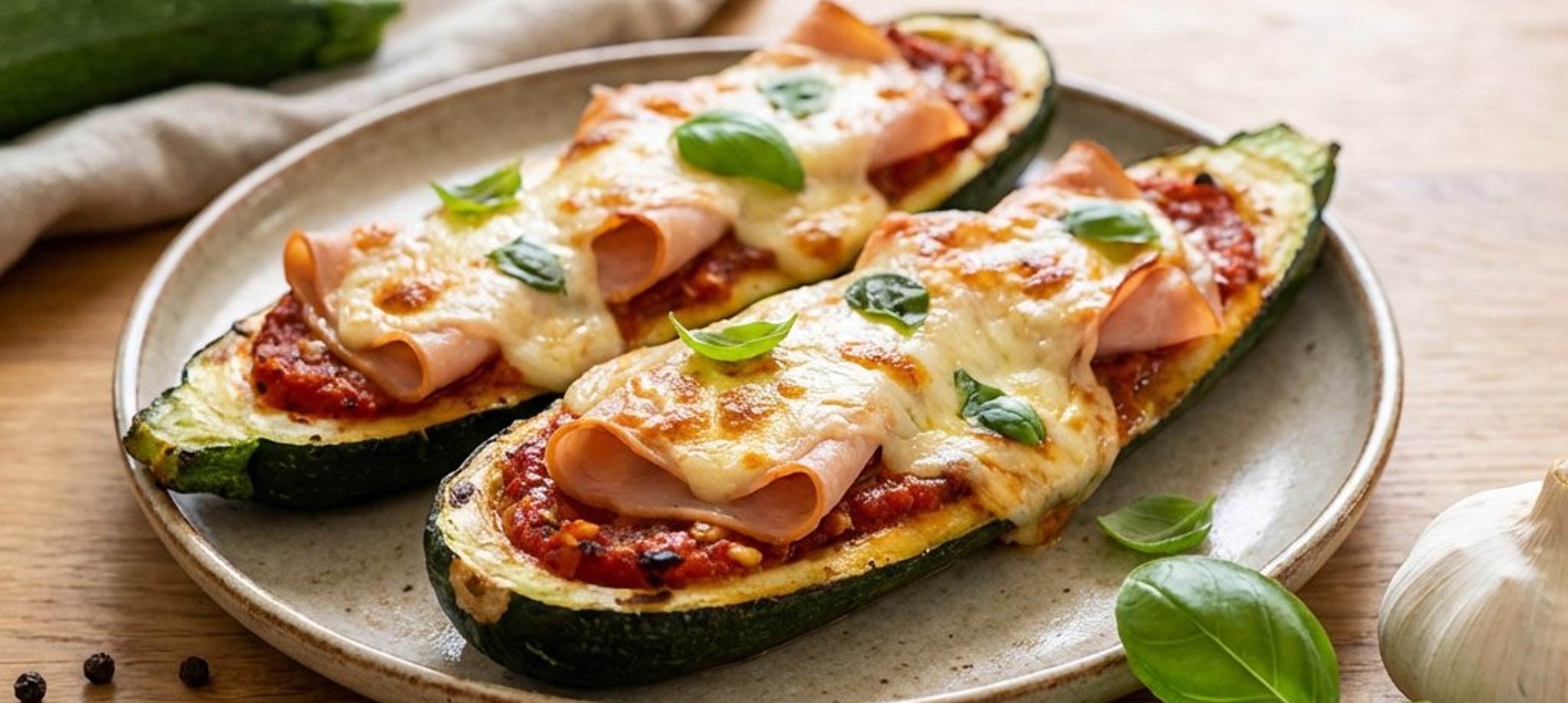 - 5Die gefüllten Zucchini für weitere 20 Minuten backen, bis der Käse goldbraun und geschmolzen ist. Vor dem Servieren mit frischem Basilikum garnieren.