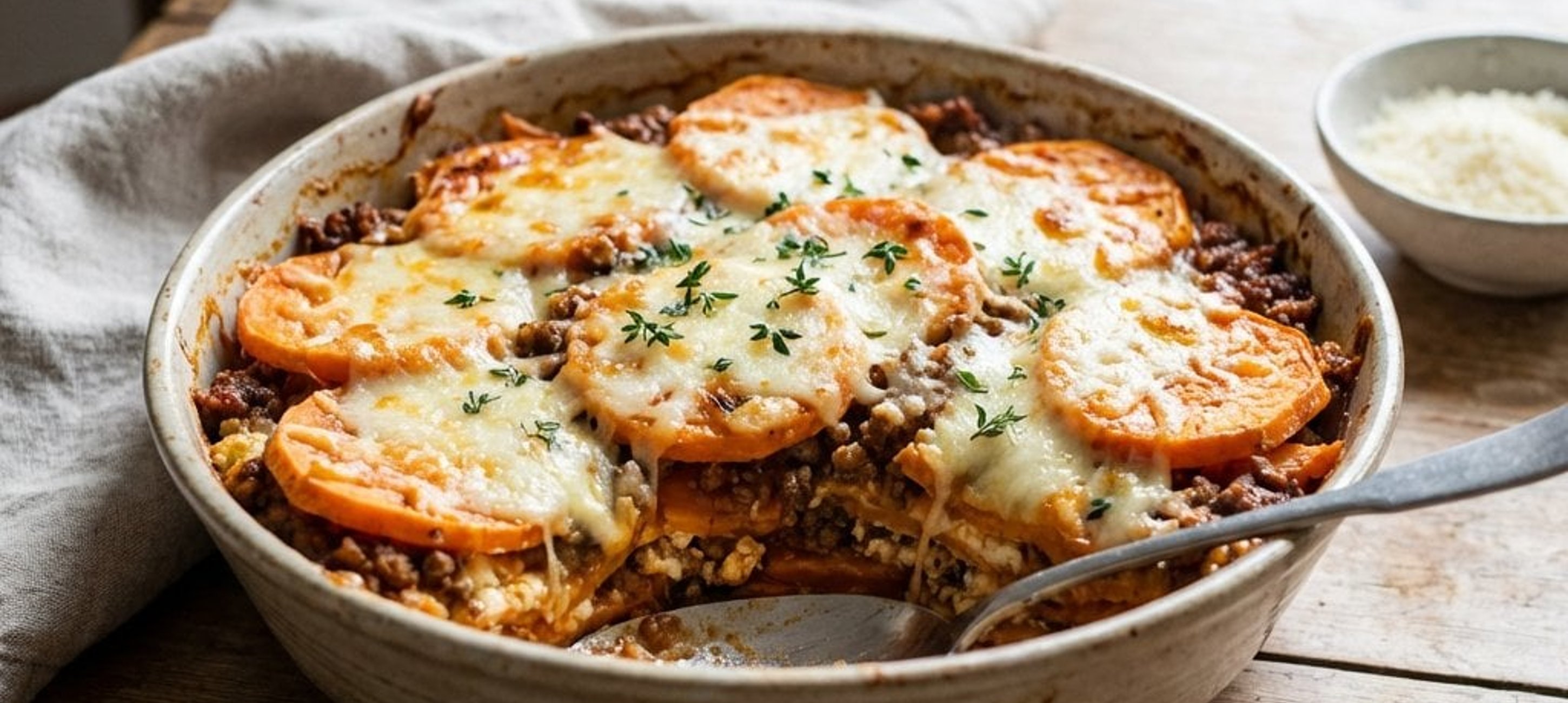Ein kleiner Tipp: Wenn Sie die Süßkartoffelscheiben vor dem Schichten kurz in kochendem Wasser blanchieren, werden sie in der Lasagne garantiert butterweich. Servieren Sie dazu einen frischen Blattsalat mit Kernöl-Dressing für das echte österreichische Ge