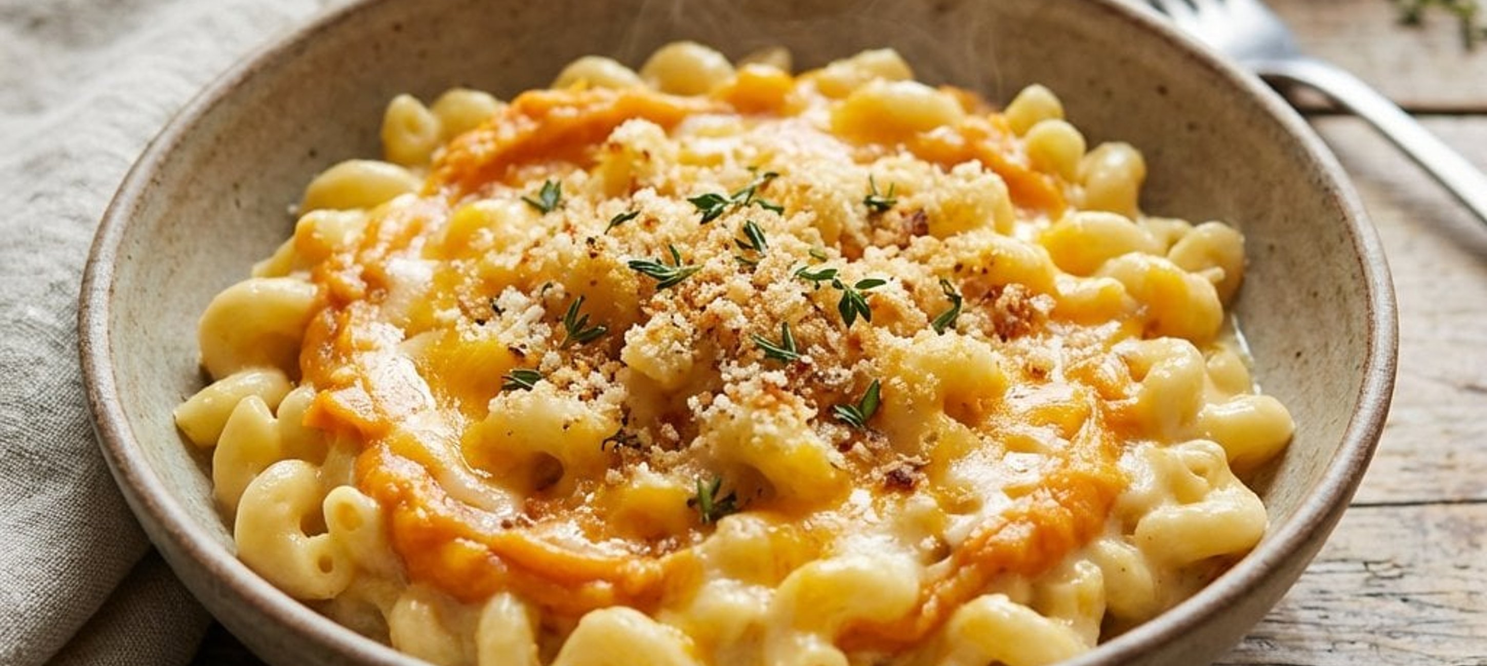 - 1Das Süßkartoffel-Püree zurück in den Topf geben. Die Reis-Cuisine hinzufügen, gut verrühren und bei kleiner Hitze etwa 5 Minuten köcheln lassen. Den frisch geriebenen Cheddar unterrühren, bis er vollständig geschmolzen ist. Den Topf vom Herd nehmen, die Sauce mit Salz und Pfeffer abschmecken und die gekochten Nudeln unterheben.