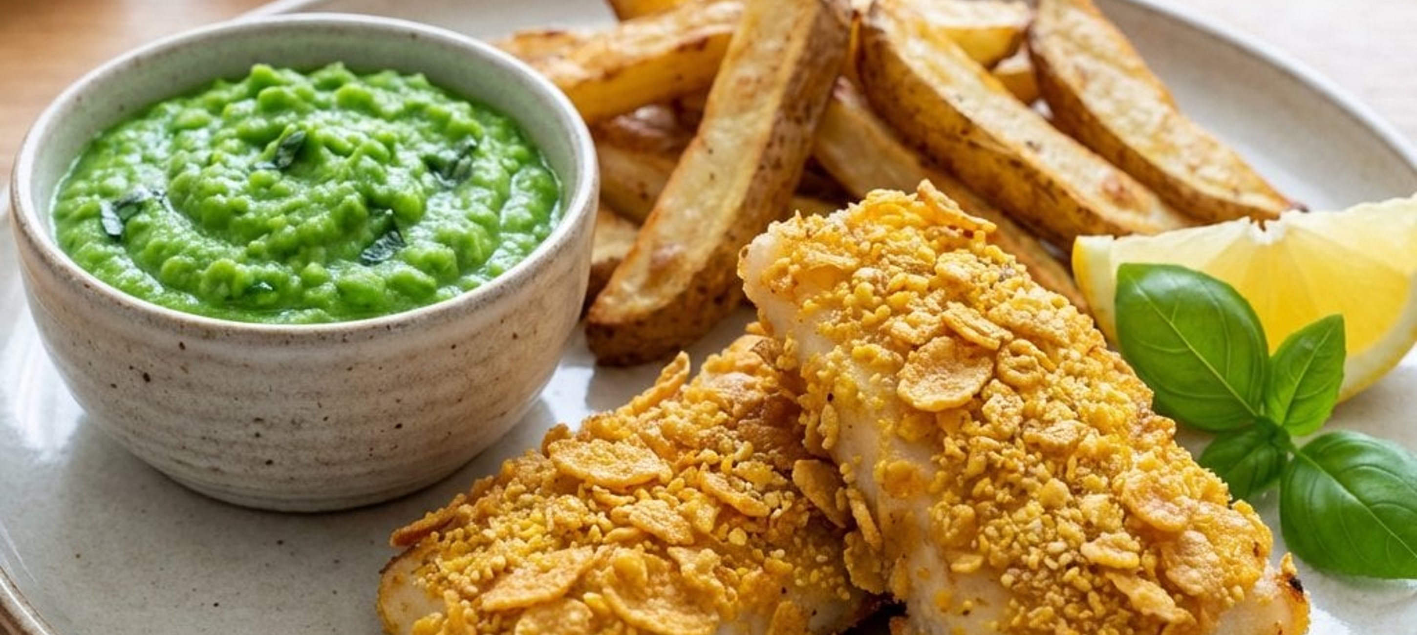 Ein Spritzer frischer Zitronensaft über den Fisch kurz vor dem Servieren hebt die Aromen der Maiskruste besonders hervor. Für eine extra feine Note können Sie dem Erbsenpüree auch einen kleinen Klecks Sauerrahm hinzufügen.