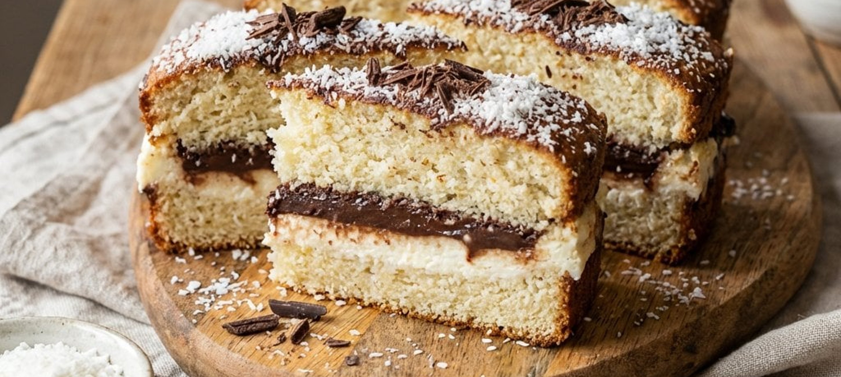 - 6Zum Schluss die Kokosraspeln und die fein geriebene Zartbitterschokolade über die Topfenschicht streuen. Den Kuchen für mindestens eine weitere Stunde im Kühlschrank ziehen lassen. Vor dem Servieren in gleichmäßige Schnitten schneiden.