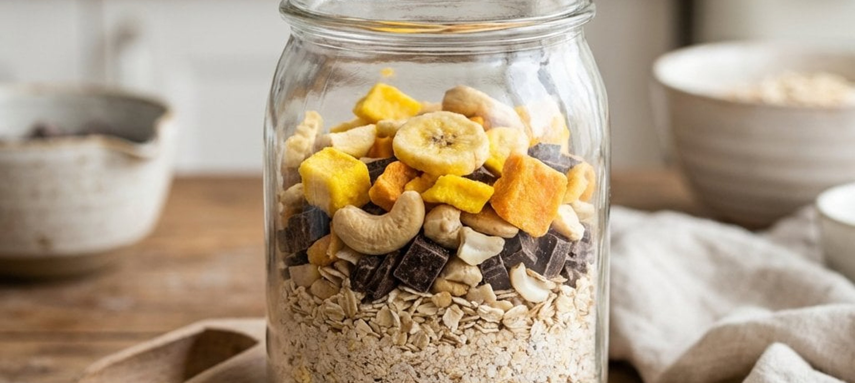 - 30 g gefriergetrocknete Früchte (z.B. Mango und Banane)