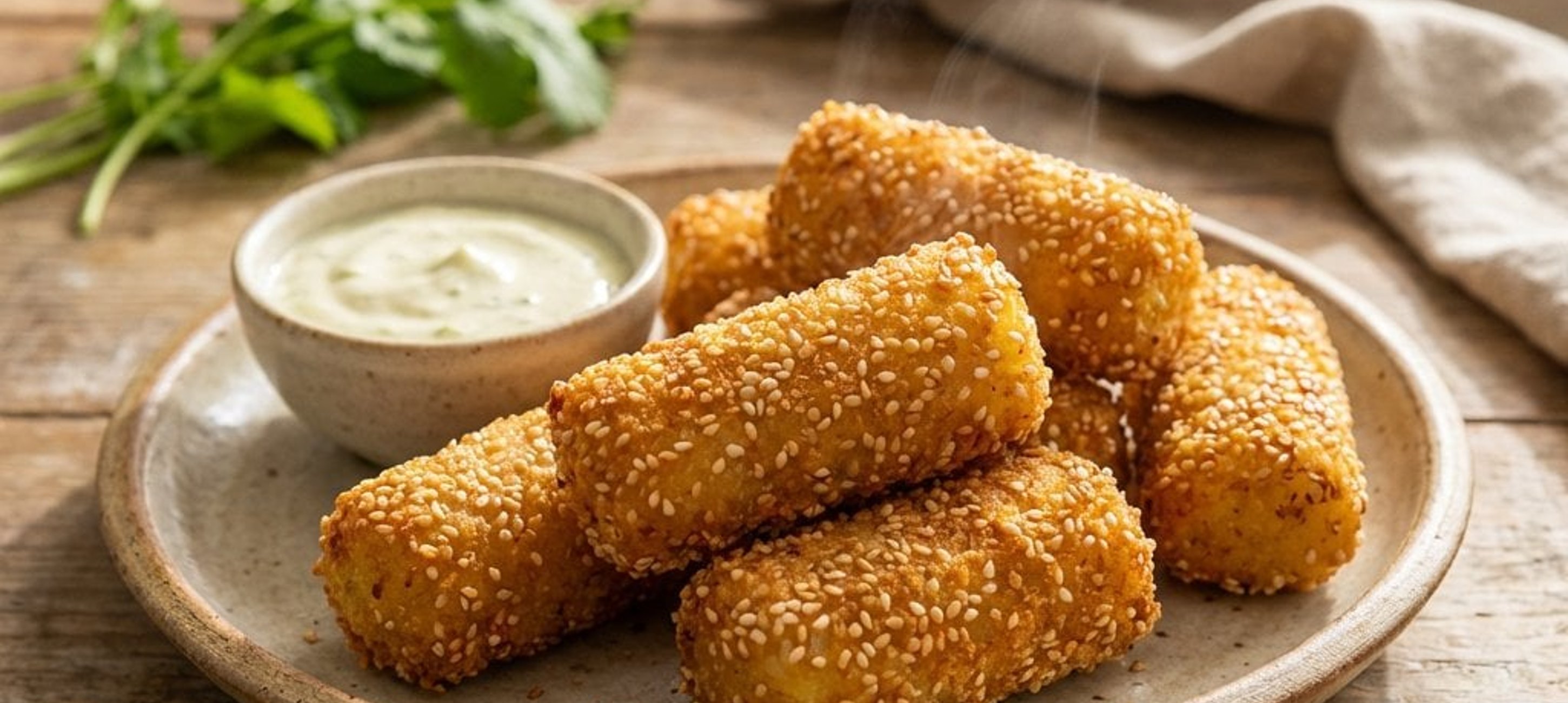 Verwenden Sie für ein besonders intensives Aroma eine Mischung aus hellem und schwarzem Sesam. Die Kroketten schmecken auch hervorragend als Beilage zu gegrilltem Fleisch oder einem frischen Salat.