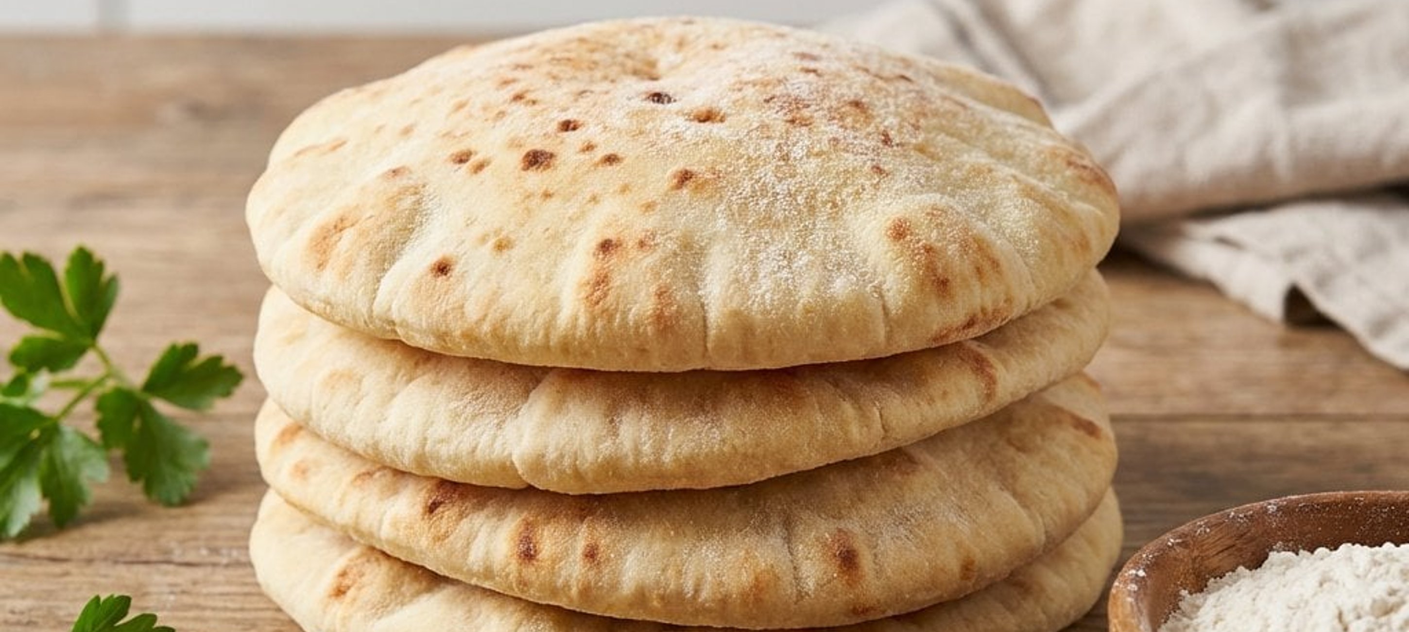 Servieren Sie die Pitabrote klassisch mit Hummus, Olivenöl und Za'atar oder füllen Sie sie mit gegrilltem Hendl und frischem Salat.