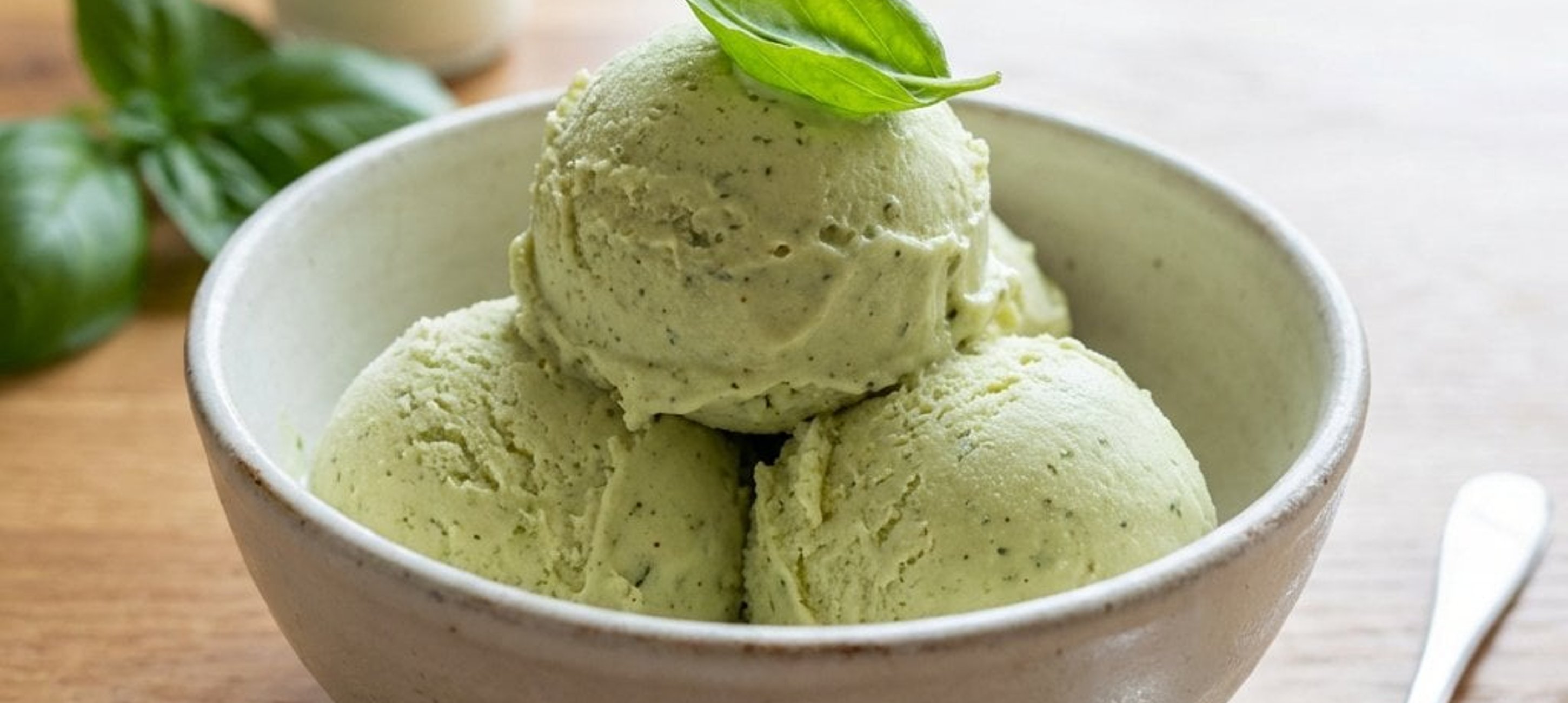 - 3Schlagen Sie das Schlagobers steif und heben Sie die Basilikum-Mischung vorsichtig unter. Füllen Sie die Masse in einen gefrierfesten Behälter und stellen Sie diesen für mindestens 4 Stunden, am besten über Nacht, in den Gefrierschrank, bis das Eis fest geworden ist.