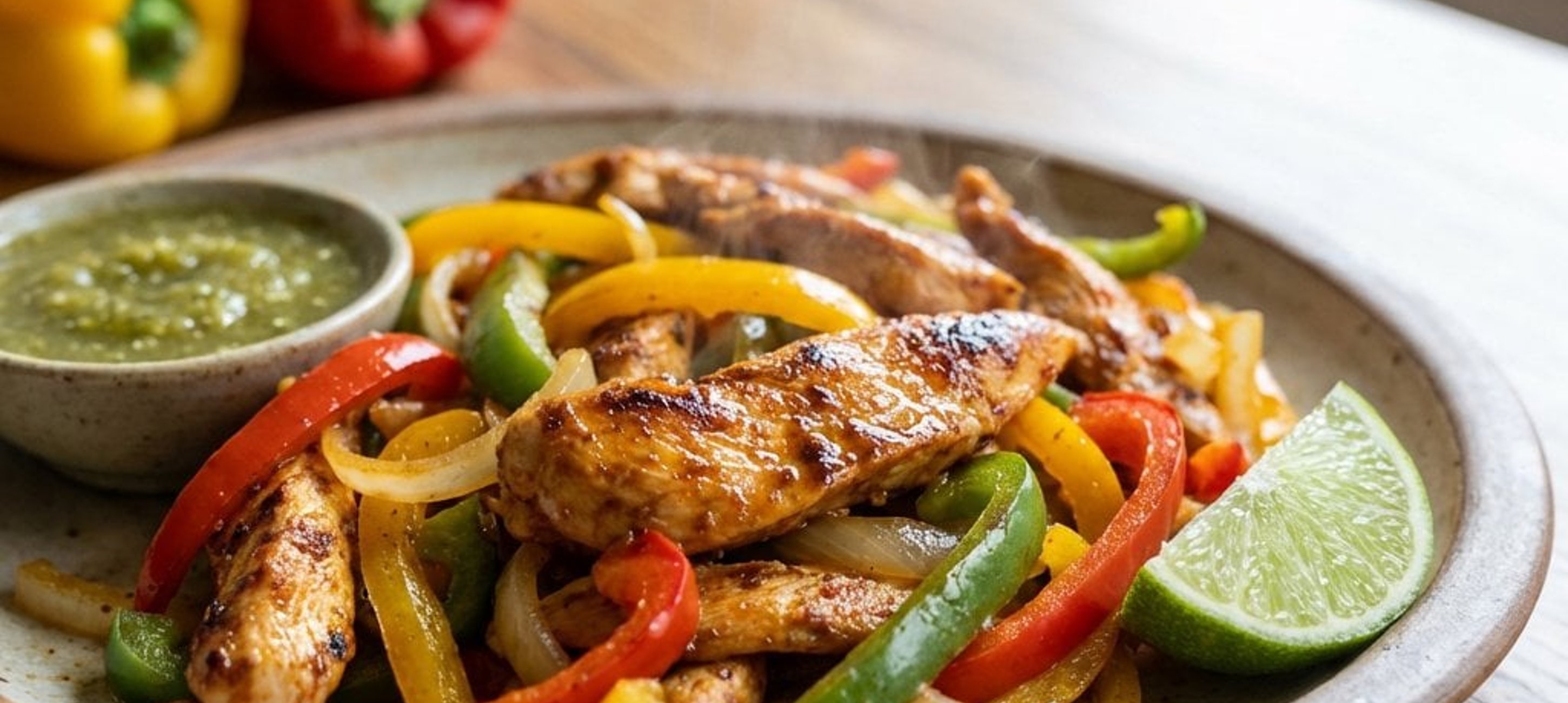 Servieren Sie die Fajitas klassisch in warmen Tortillas mit einem Klecks Salsa Verde. Für extra Frische passen auch Sauerrahm oder Avocado-Spalten hervorragend dazu.