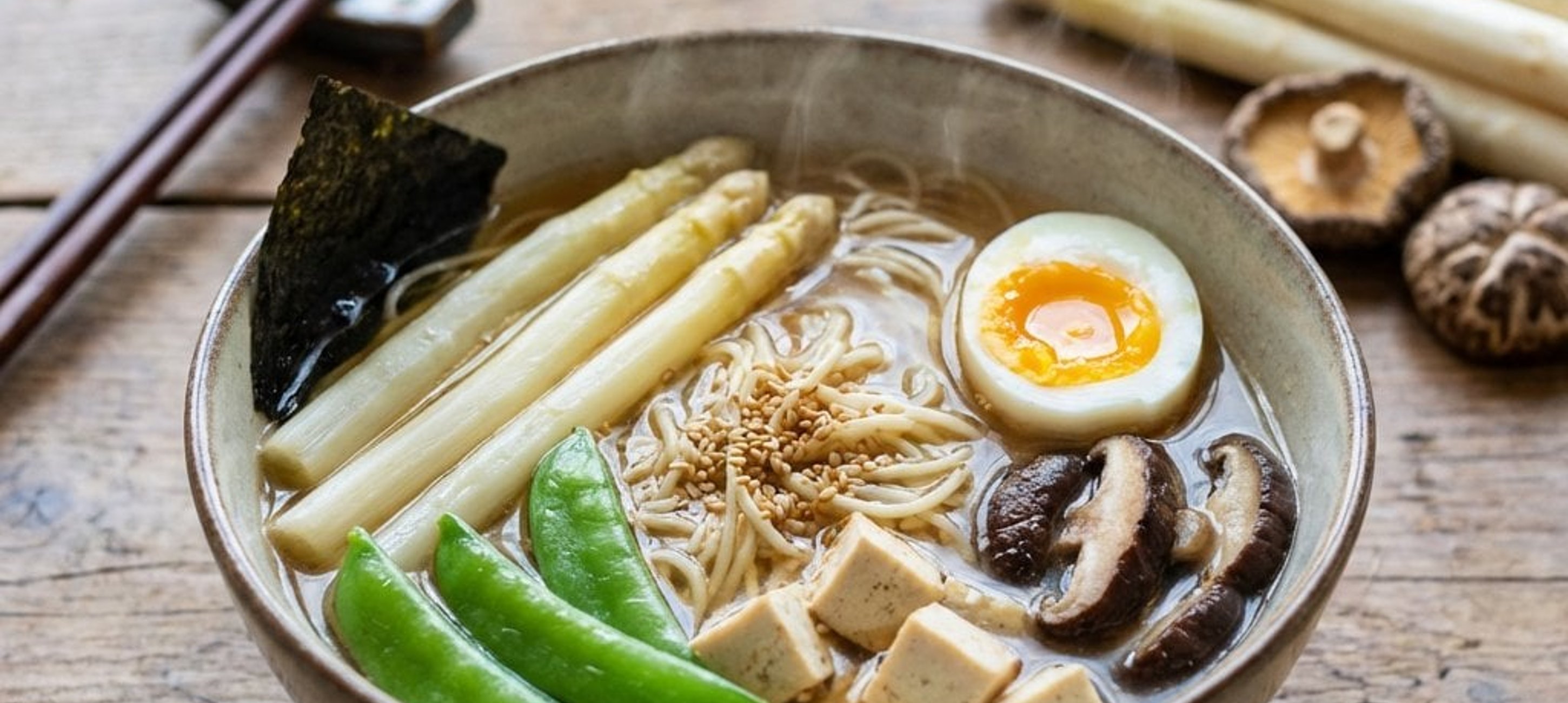 Ein kulinarischer Tipp: Blanchieren Sie den Spargel in Wasser mit etwas Zucker und Zitrone, um die feine Süße zu betonen und die Farbe zu erhalten. Servieren Sie den Ramen in vorgewärmten Schalen, damit die Brühe länger heiß bleibt.