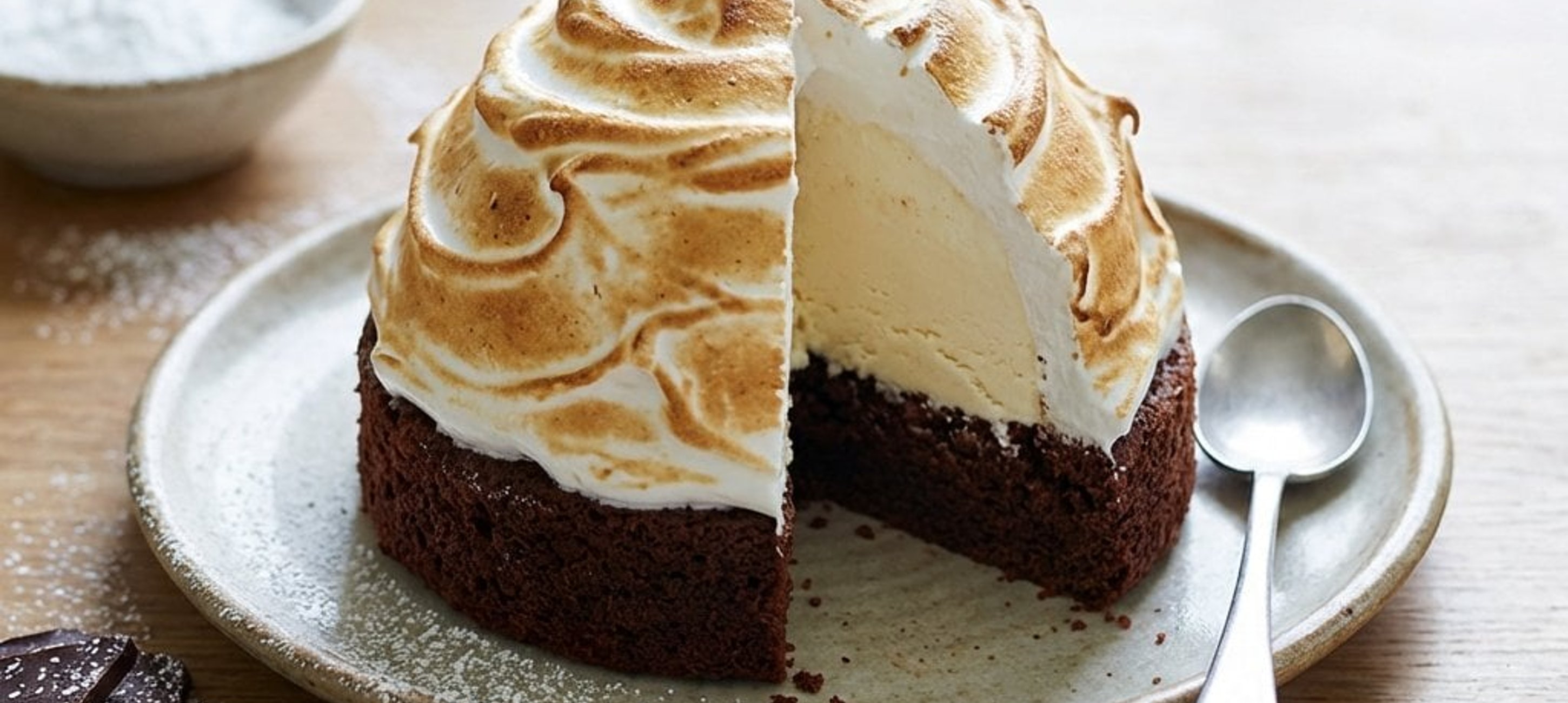 - 5Sofort im heißen Ofen für 3–4 Minuten backen, bis das Baiser außen fest und goldbraun ist. Sofort servieren!