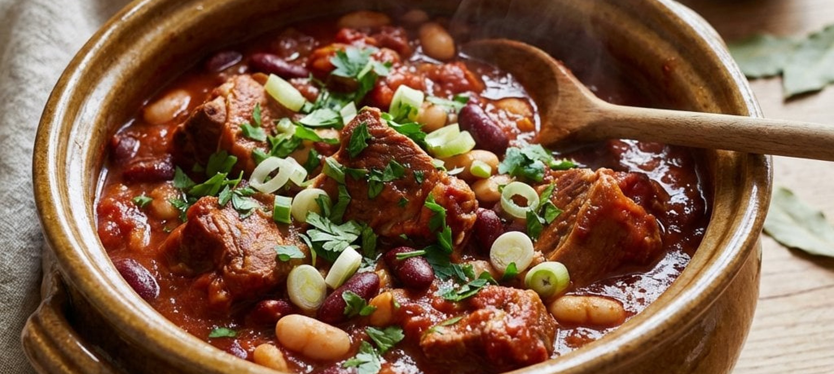 - 1Die abgetropften und gespülten Bohnen (rot und weiß) zum Fleisch geben, die Hitze kurz erhöhen und alles zusammen weitere 10 Minuten köcheln lassen.